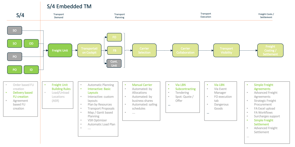n addition to ERP, customers can access the basic functions of SAP TM, including Freight Unit, Freight Order, and manual processing capabilities. This version is essentially a “starter” edition of TM, serving as a simplified or “promotional” version of the full-fledged solution (see point 2).